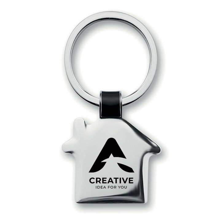 HOUSY Elegant House Shaped Metal Key Ring with Nickel Finish
