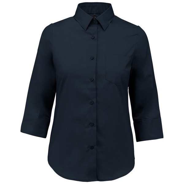 Γυναικείο πουκάμισο με μανίκι 3/4 από ποπλίνα πολυεστέρα-βαμβάκι προσφέρει επαγγελματική εμφάνιση και εύκολη φροντίδα, ιδανικό για στολές επιχειρήσεων ή καθημερινή χρήση. Αυτό το ανθεκτικό ένδυμα είναι κατασκευασμένο από μείγμα 65% πολυεστέρα και 35% βαμβακιού, διασφαλίζοντας ότι παραμένει ατσαλάκωτο καθ' όλη τη διάρκεια της εργάσιμης ημέρας με ελάχιστο σιδέρωμα. Το μήκος μανικιού 3/4 προσφέρει μια σύγχρονη εναλλακτική στα παραδοσιακά μακριά μανίκια, παρέχοντας ελευθερία κινήσεων και μια εκλεπτυσμένη σιλουέτα για επαγγελματική χρήση όλο το χρόνο.