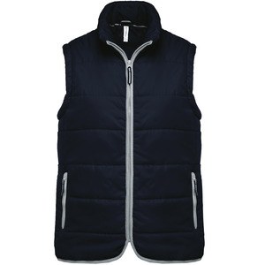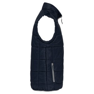 This sleeveless jacket has an all-polyester ripstop exterior with an acrylic coating, as well as a polyester inner lining with a 210T polyester lining.