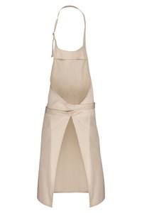 This apron is made entirely of cotton and comes in a variety of contrasting colors.