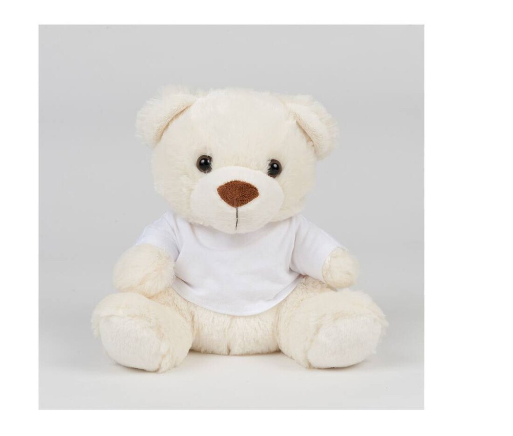 Αρκουδάκι με μπλουζάκι - λούτρινα αρκουδάκια σε κρεμ και μεσαίο καφέ χρώμα ντυμένα με ένα αφαιρούμενο λευκό βαμβακερό μπλουζάκι. Ιδανικό για διακόσμηση. Αφαιρέστε όλες τις ετικέτες και τους συνδετήρες τους πριν δώσετε αυτά τα αντικείμενα σε ένα παιδί. Κατάλληλο για όλες τις ηλικίες 0+. Συμμορφώνεται με τους Ευρωπαϊκούς Κανονισμούς Ασφάλειας Παιχνιδιών EN71. Οδηγίες πλυσίματος Μόνο πλύσιμο στο χέρι
