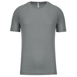 Ανδρικό αθλητικό μπλουζάκι με κοντό μανίκι από 100% πολυεστέρα που στεγνώνει γρήγορα, σχεδιασμένο για δραστηριότητες υψηλής απόδοσης και μαζική εξατομίκευση. Αυτό το ελαφρύ ένδυμα είναι κατασκευασμένο για αθλητές και δραστήρια άτομα που απαιτούν διαχείριση της υγρασίας κατά τη διάρκεια έντονης προπόνησης. Τα μανίκια ρεγκλάν με ραφή cover stitch εξασφαλίζουν μέγιστη κινητικότητα και αποτρέπουν τους ερεθισμούς, ενώ η ενισχυμένη λαιμόκοψη και το φινίρισμα με διπλή βελόνα παρέχουν την ανθεκτικότητα που απαιτείται για συχνή χρήση. Είτε ψάχνετε για ένα απλό τεχνικό μπλουζάκι για την καθημερινή σας προπόνηση είτε για έναν καμβά υψηλής ποιότητας για την επωνυμία της ομάδας σας, αυτό το t-shirt αποδίδει. Η λεία επιφάνεια πολυεστέρα είναι εξαιρετική για μεταξοτυπία και DTF, καθιστώντας το αγαπημένο για αθλητικούς συλλόγους και εταιρικές εκδηλώσεις. Διαθέσιμο για χονδρική πώληση, προσφέρει επαγγελματική εμφάνιση σε προσιτή τιμή. Το τεχνικό ύφασμα στεγνώνει γρήγορα, διατηρώντας σας δροσερούς.