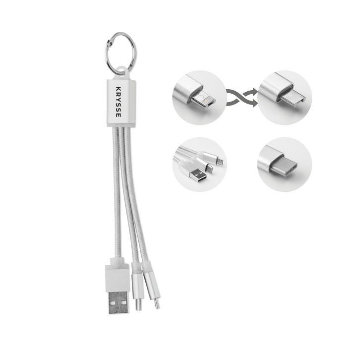 Key ring with 1A micro USB and type C charging cable.
