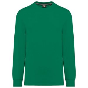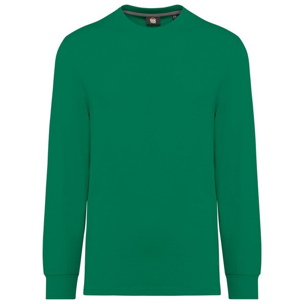 2x1 ribbed crew neckline with elastane and orange taped neck on the plain and marled colours and matching on the fluorescent colours.