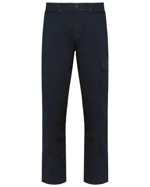 Elasticated waistband on the sides with belt loops, including one wide loop at the center back.